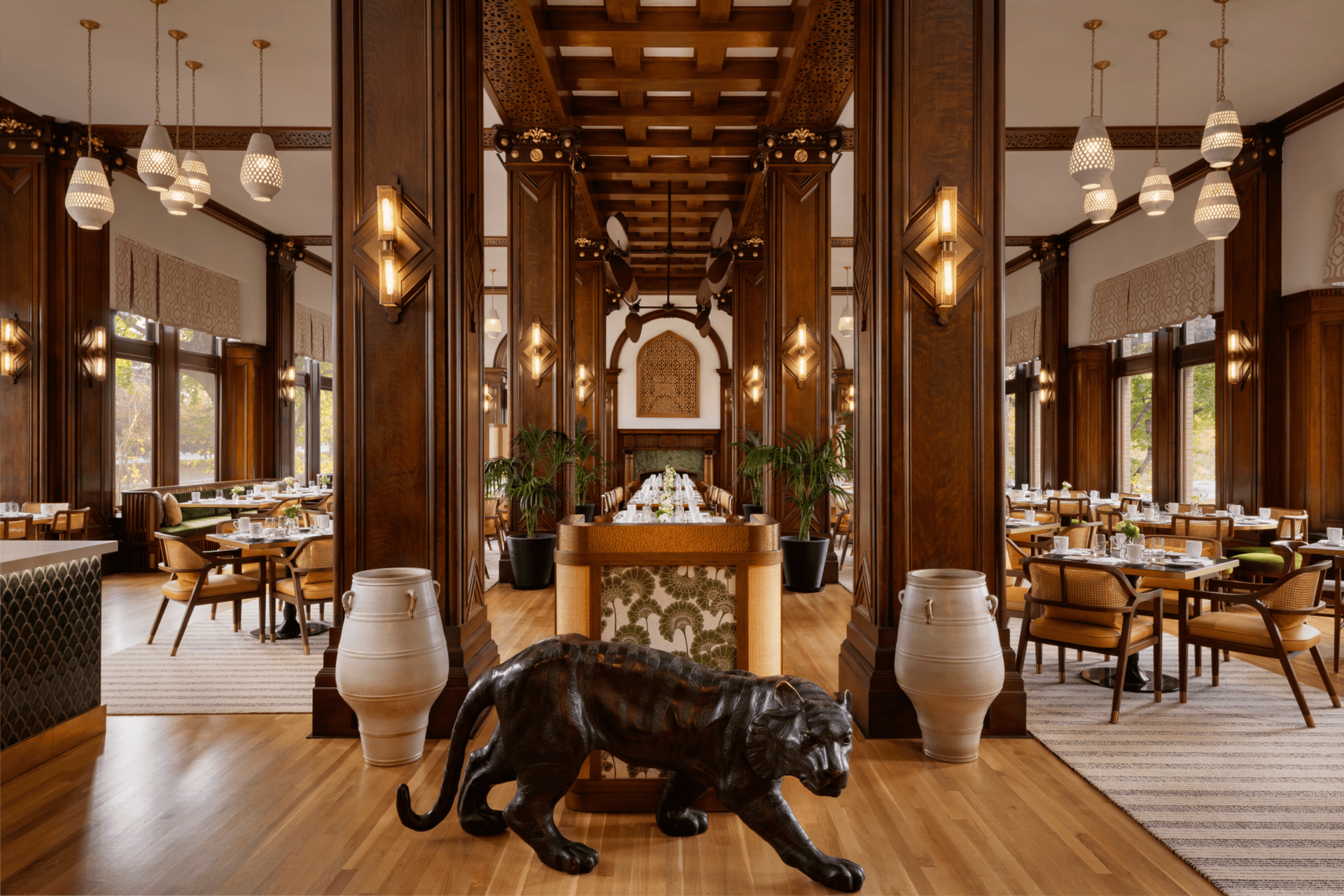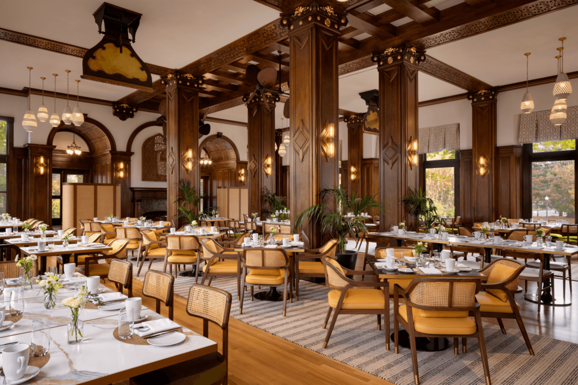 Reopened with breakfast and dinner service, the new Bengal draws inspiration from both past and present. Organic, light-filled tones brighten the room and echo the surrounding garden just beyond its windows, creating a seamless connection between indoors and out. Heritage-style beams remain as a tribute to the space’s history, while plush velvet seating introduces modern comfort and understated luxury. Come and experience the new era of The Bengal, where history, hospitality, and modern refinement come together.